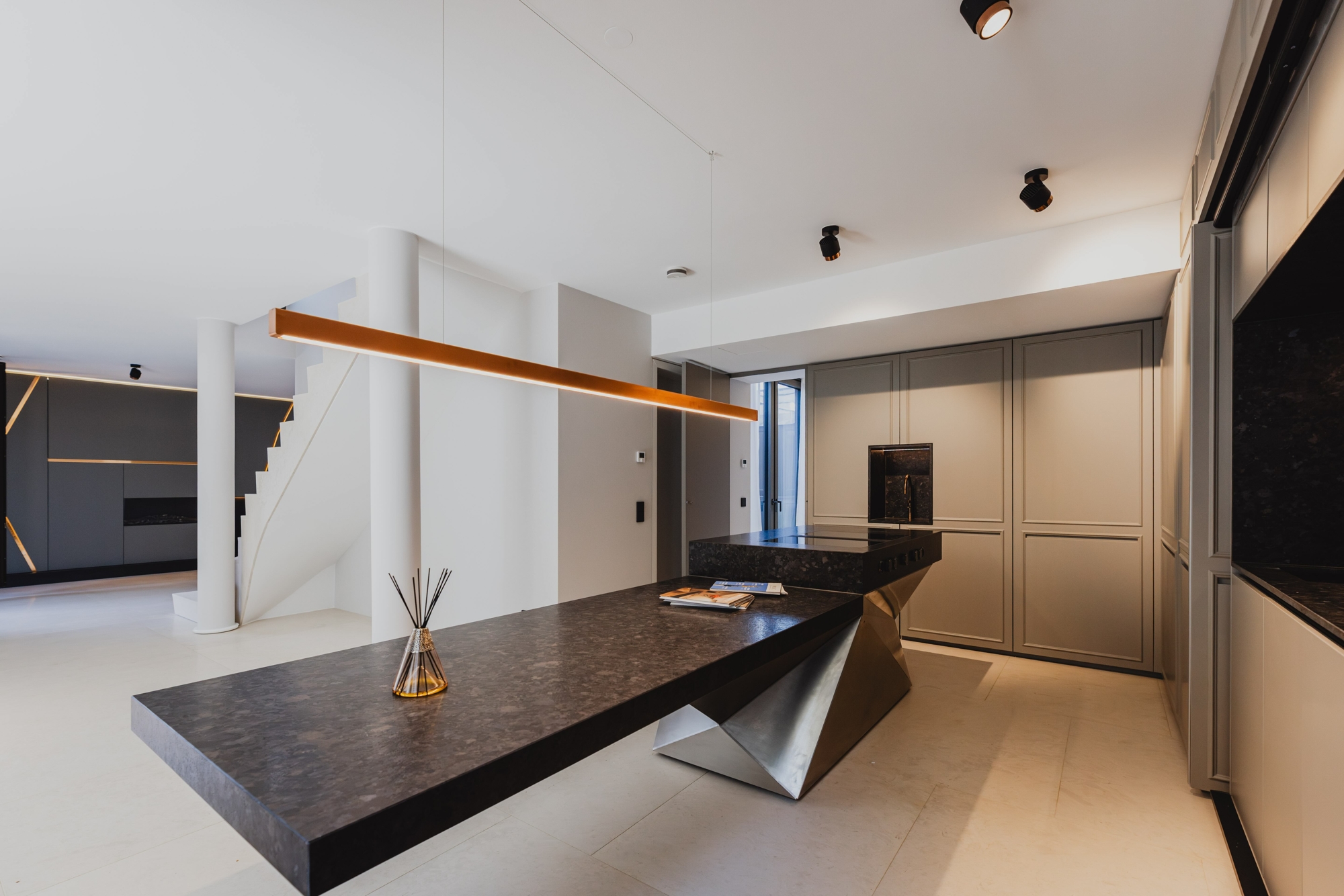 - Massgefertigte Luxus Designer Küche mit Unikat Kochinsel