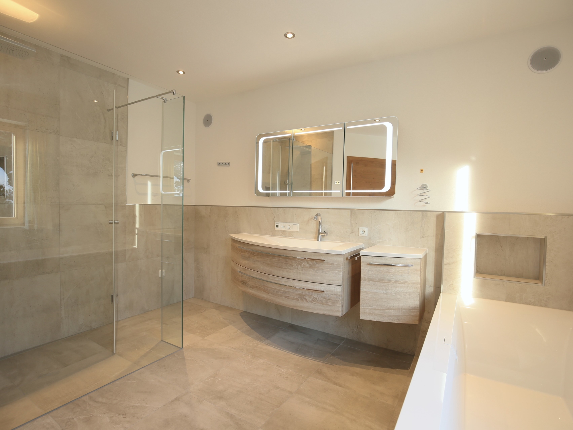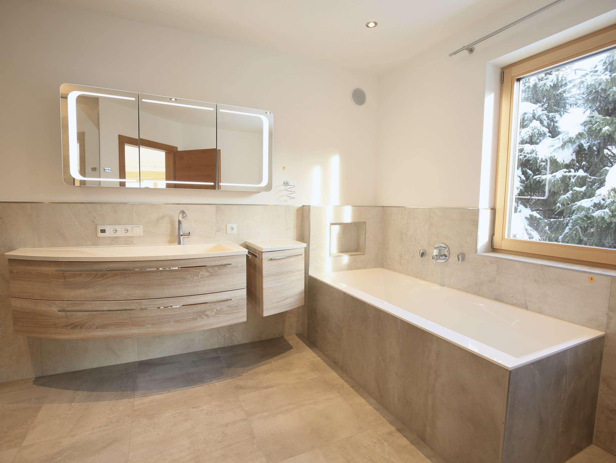 Das Untergeschoss lädt zu Ihrem persönlichen Wellnesserlebnis ein. Die bereits vorhandene Vorrichtung für einen Wellnessraum mit Sauna und Dampfsauna bietet die perfekte Umgebung zum Entspannen. Der direkte Zugang zur Terrasse eröffnet Ihnen die Möglichkeit, die Ruhe im Freien zu genießen und dabei den Blick auf den beeindruckenden Wilden Kaiser zu erleben.