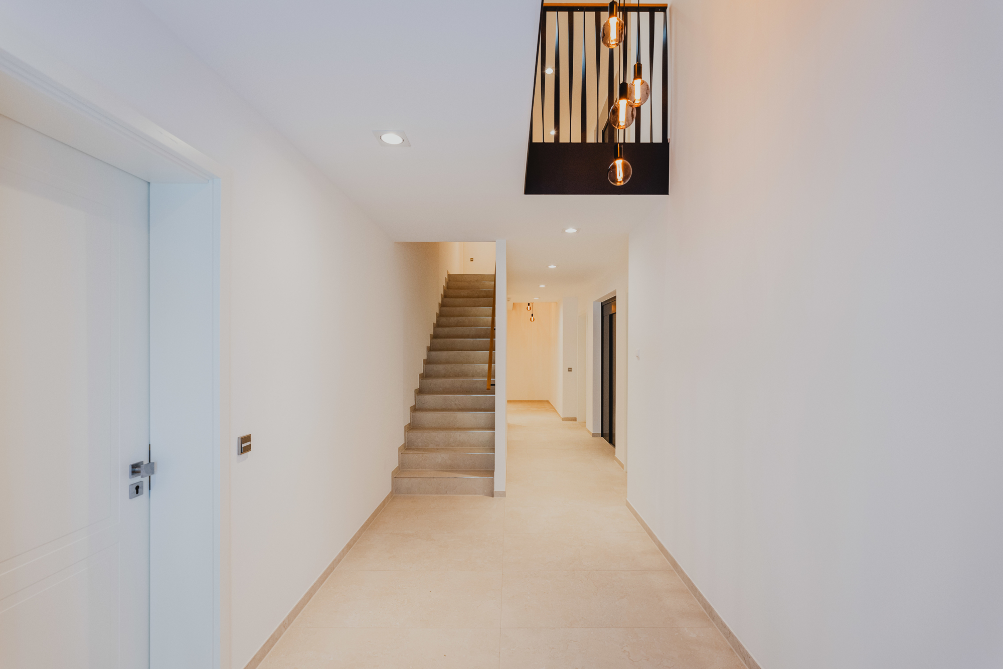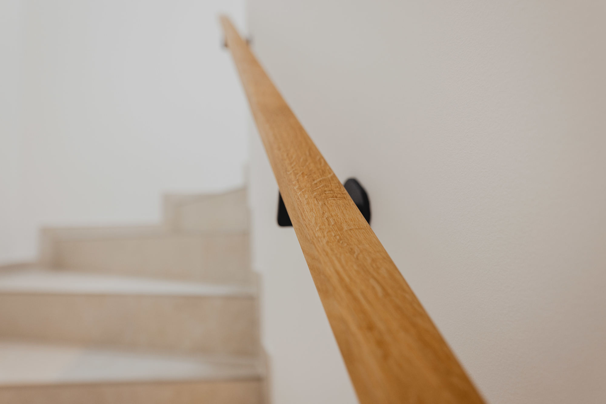 elektrischen Außenlamellen, sowie Premium Außen- und Innengeländer mit Holzhandlauf.