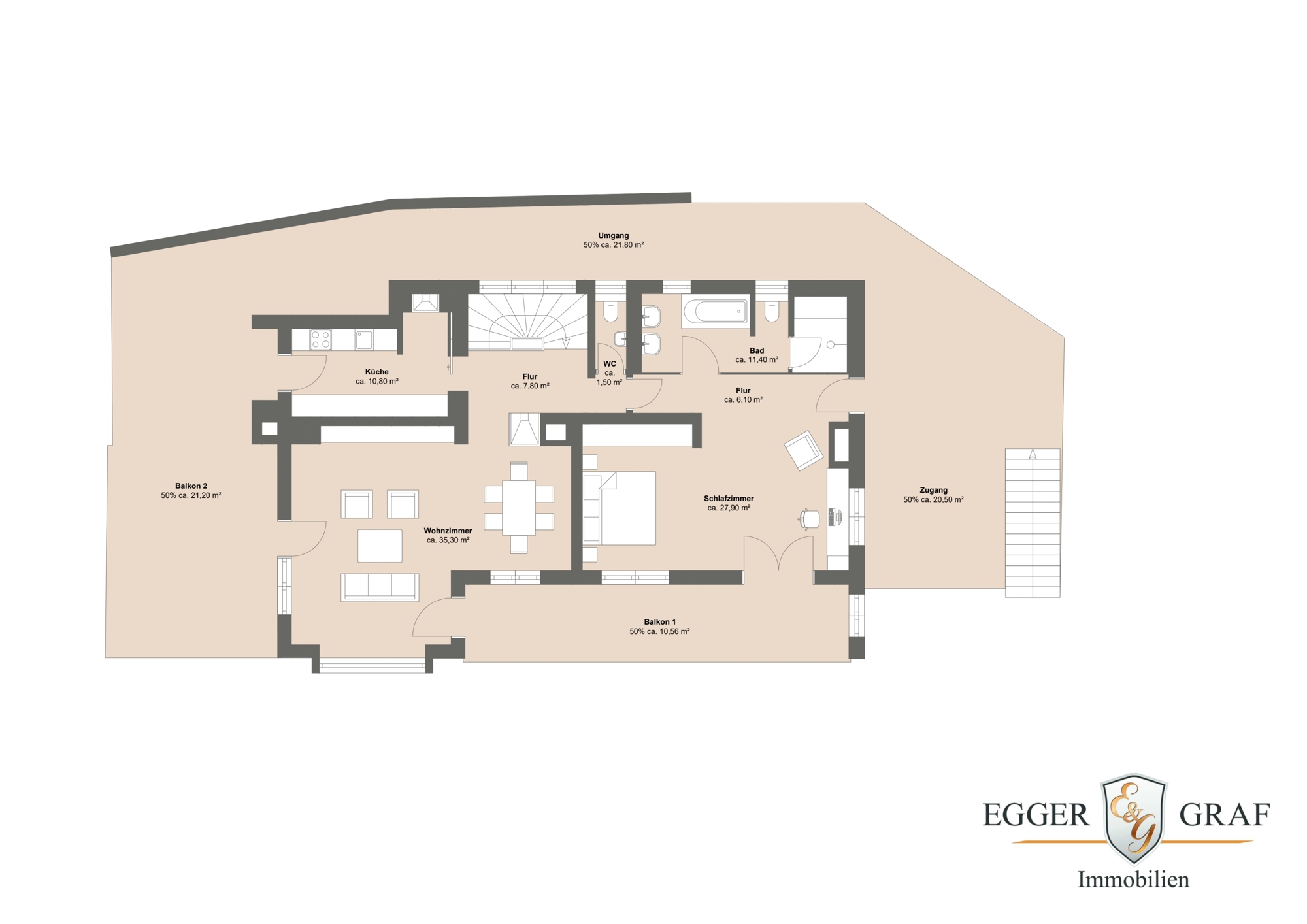 Unsere Exposés sind streng vertraulich. Eine Weitergabe dieses Angebots, einschließlich aller Informationen und Unterlagen an Dritte, ist nur mit ausdrücklicher Genehmigung der Firma EGGER & GRAF Immobilien GmbH zulässig. Jegliche unbefugte Weitergabe unseres Verkaufsangebote an Dritte verpflichtet zum Schadenersatz in Höhe der vollen Maklerprovision.