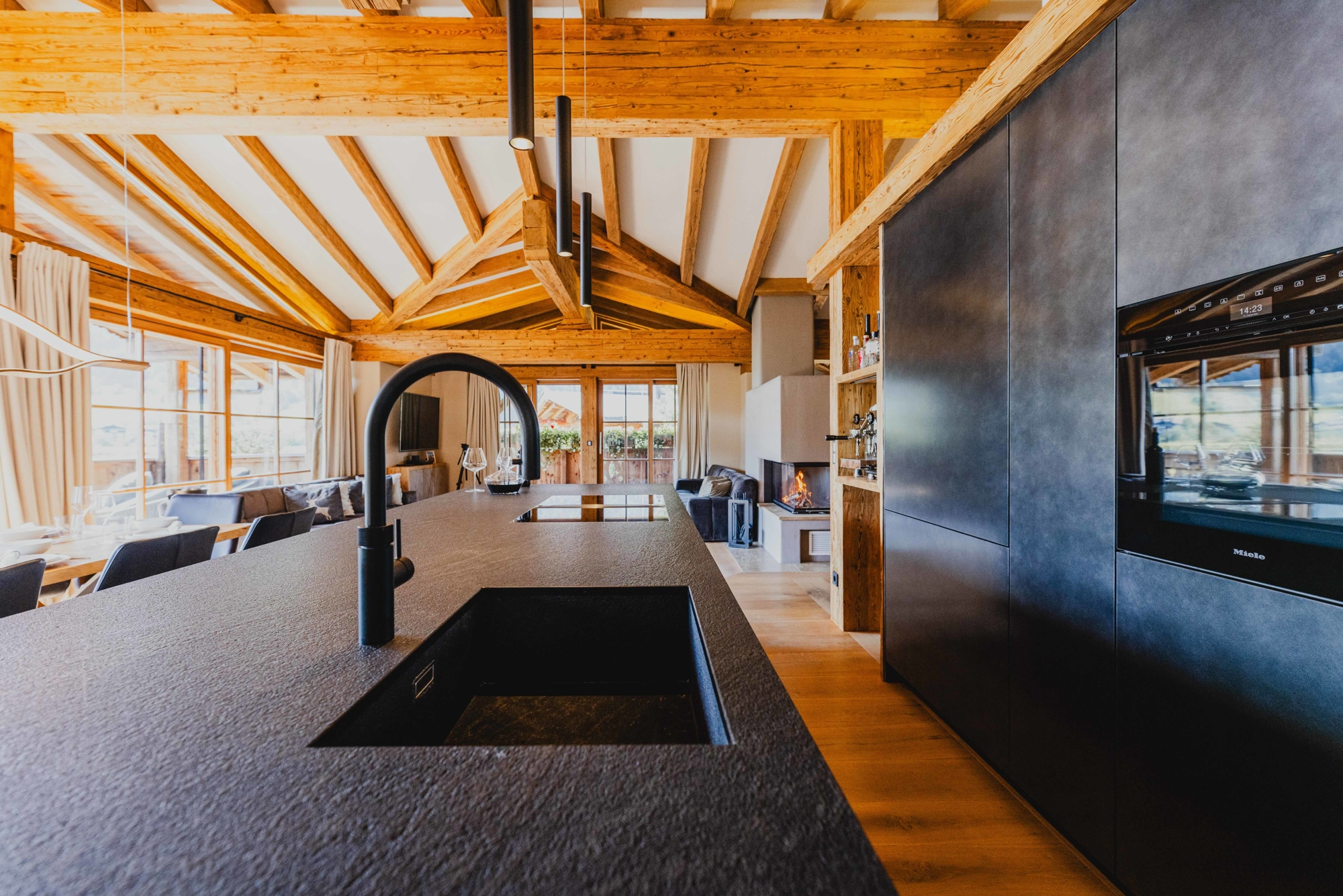 - Exlusive Designer-Küche mit 3,20m Küchenblock aus Granit und hochwertigen Miele Geräten, sowie Gaggenau Kühlschrank (90cm)