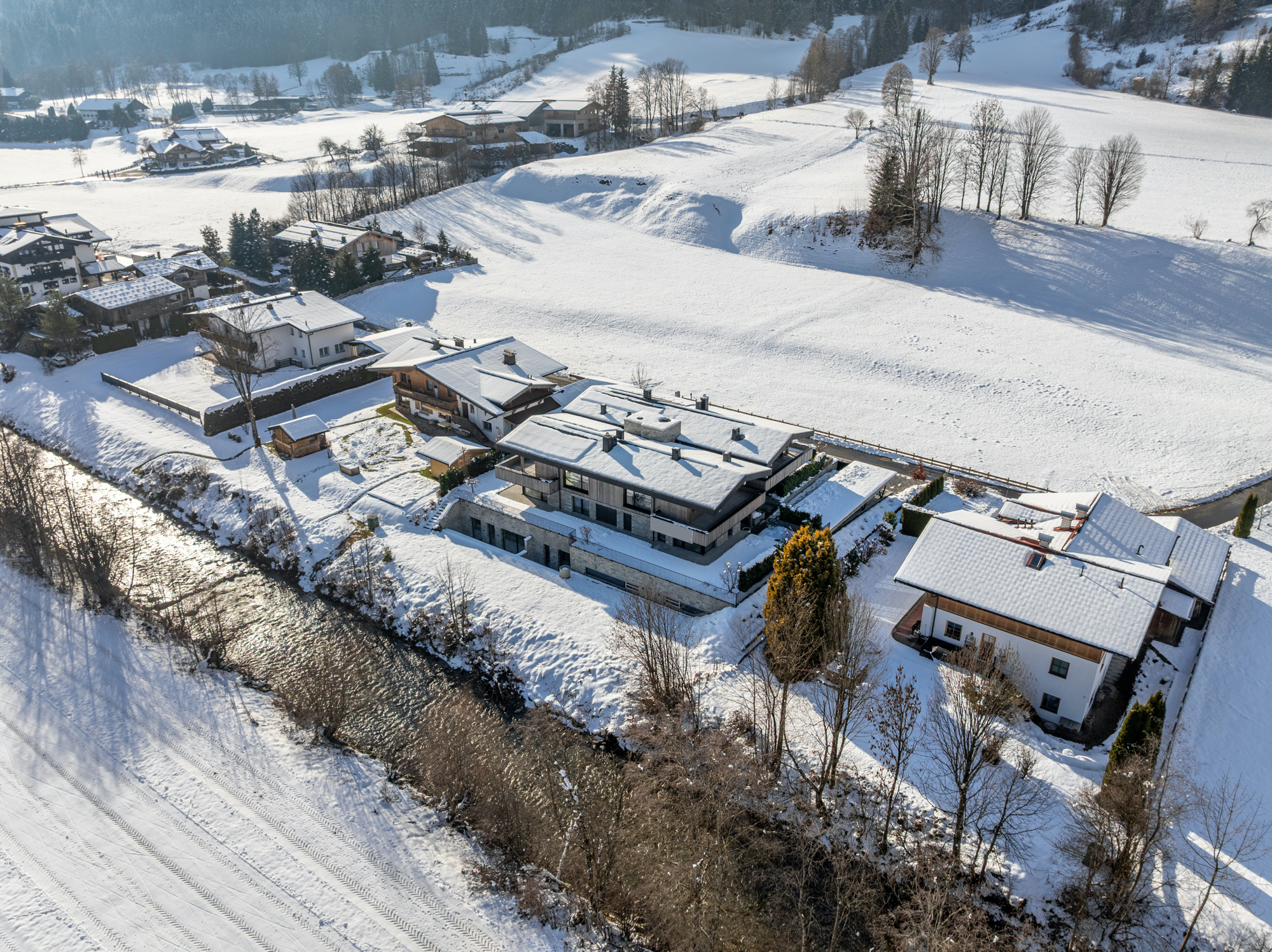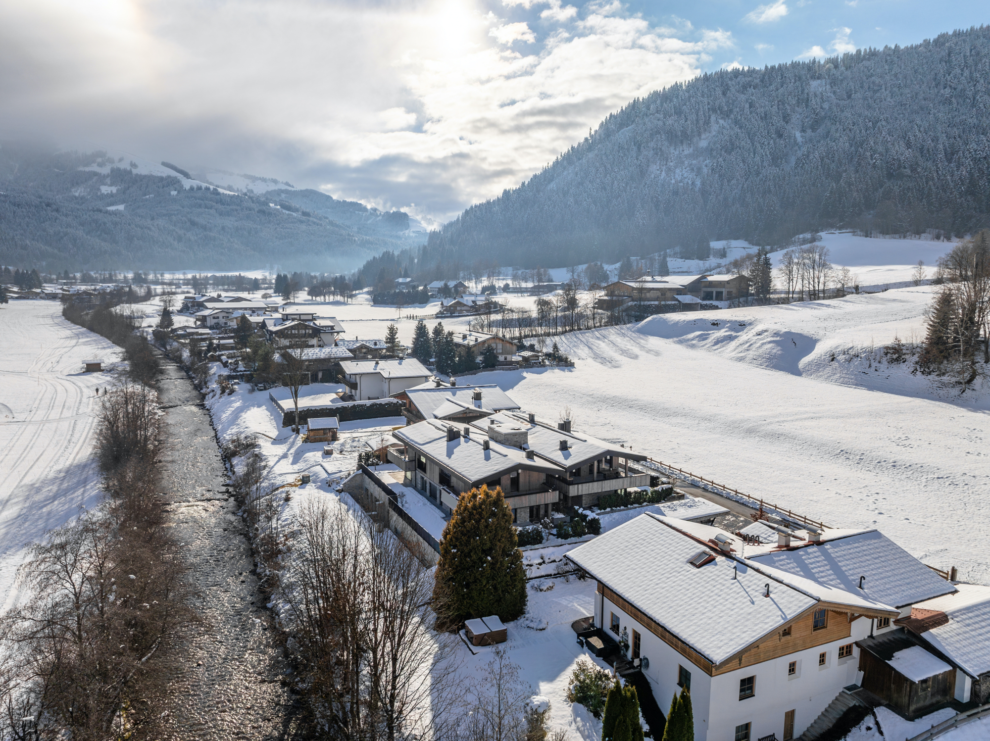 Umgeben vom Kalksteinmassiv des Wilden Kaiser im Norden, dem Familienberg Kitzbüheler Horn im Osten und dem weltberühmten Hahnenkamm im Süden, liegt das Dörfchen sehr idyllisch und gemütlich.