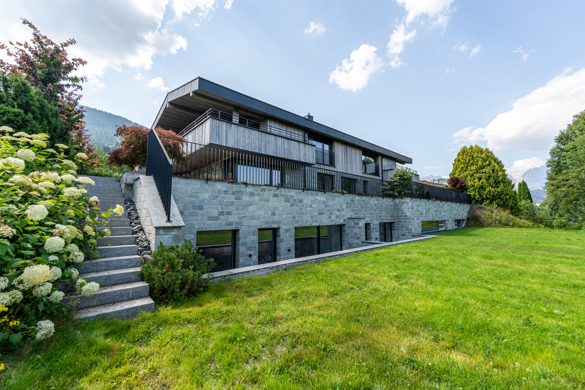 Jedes der beiden Chalets besticht durch seine klare architektonische Linie und die geschickte Verbindung aus traditionellem Holzbau und modernen Elementen. Große Glasfronten eröffnen den Blick auf das imposante Panorama der umliegenden Berge, während edle Materialien wie Naturstein, Altholz und feinste Textilien für ein behagliches Wohngefühl sorgen. Auf mehreren Etagen verteilen sich großzügige Wohn- und Schlafbereiche, Wellnesszonen mit Sauna, Fitnessraum und Innenpool sowie weitläufige Terrassen und Balkone – perfekte Rückzugsorte zu jeder Jahreszeit.