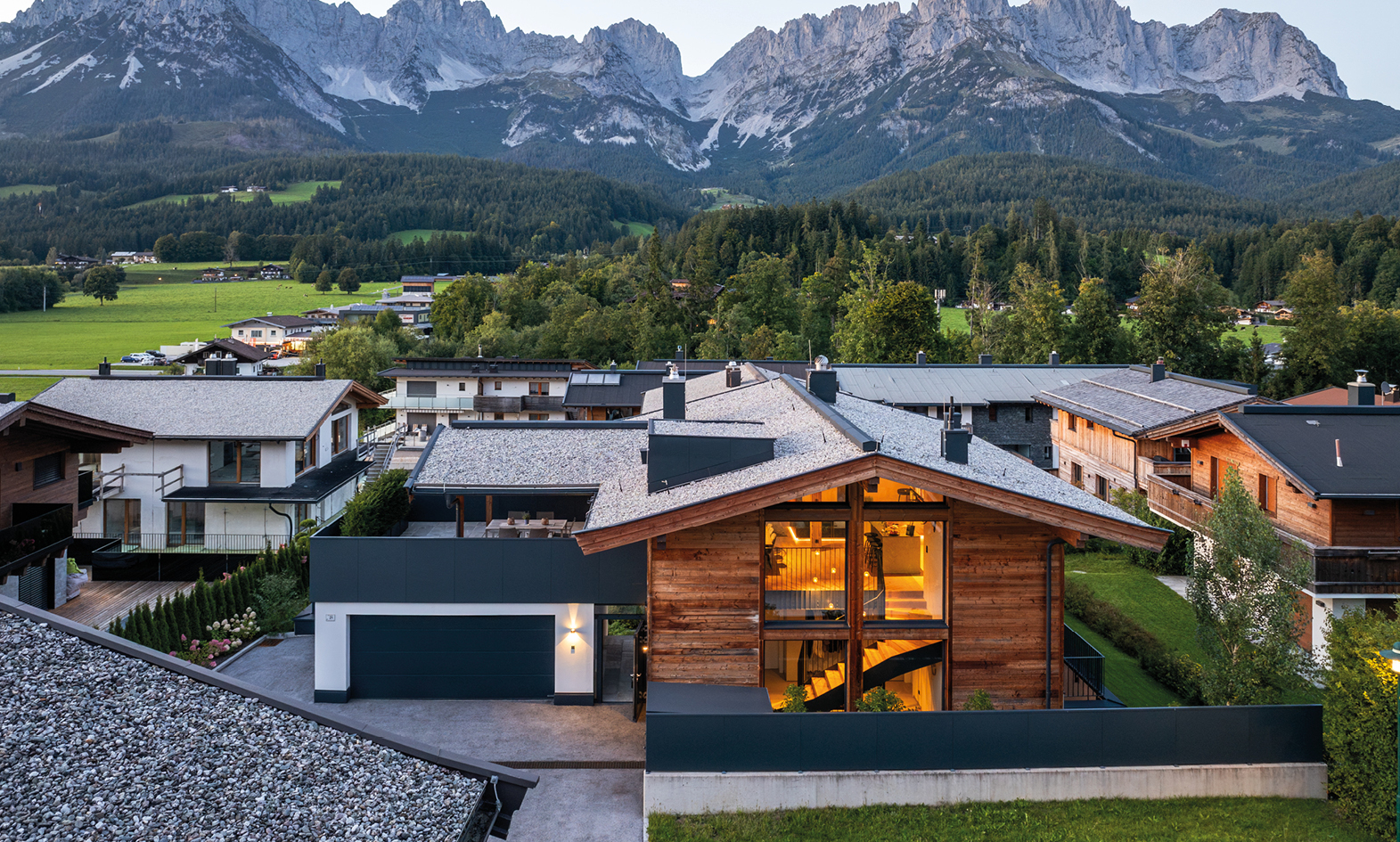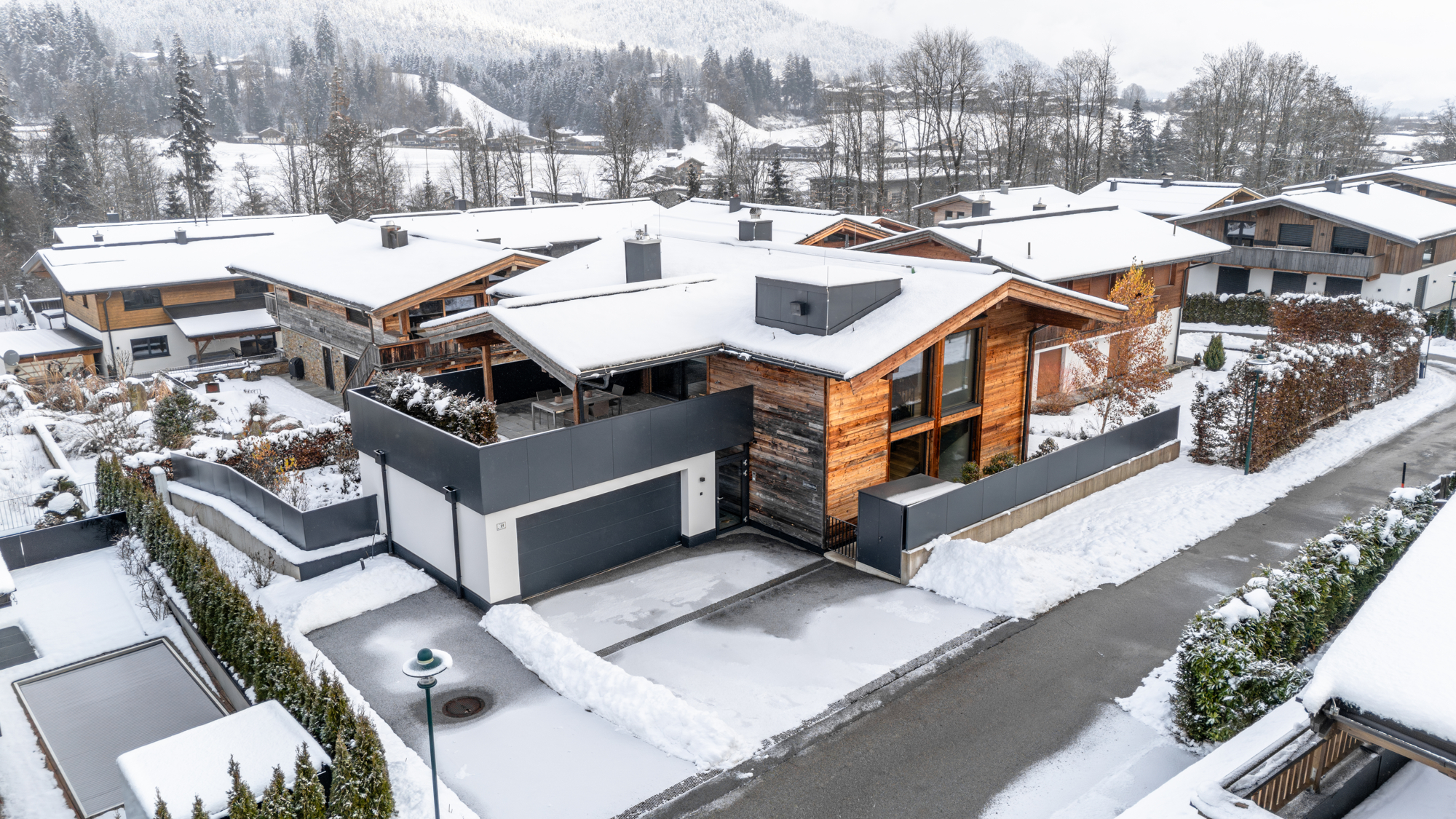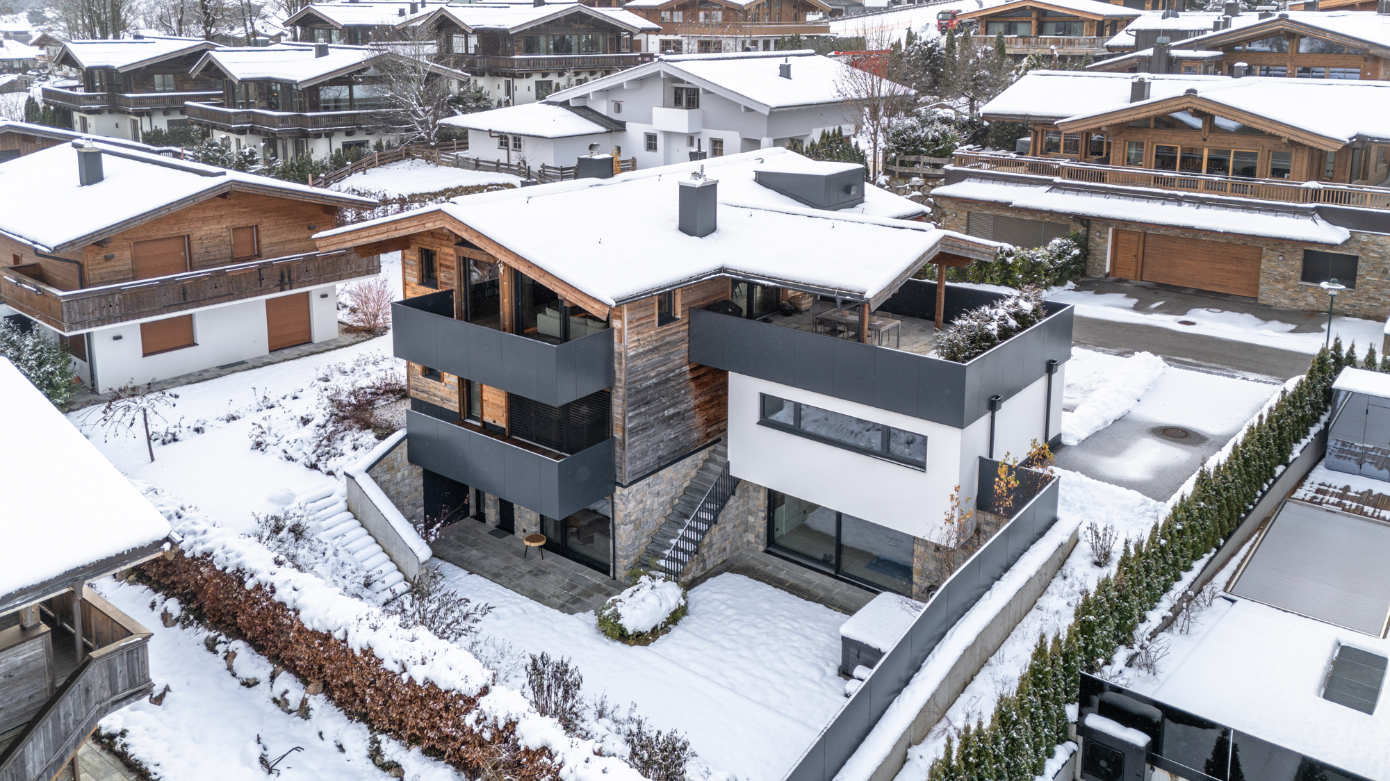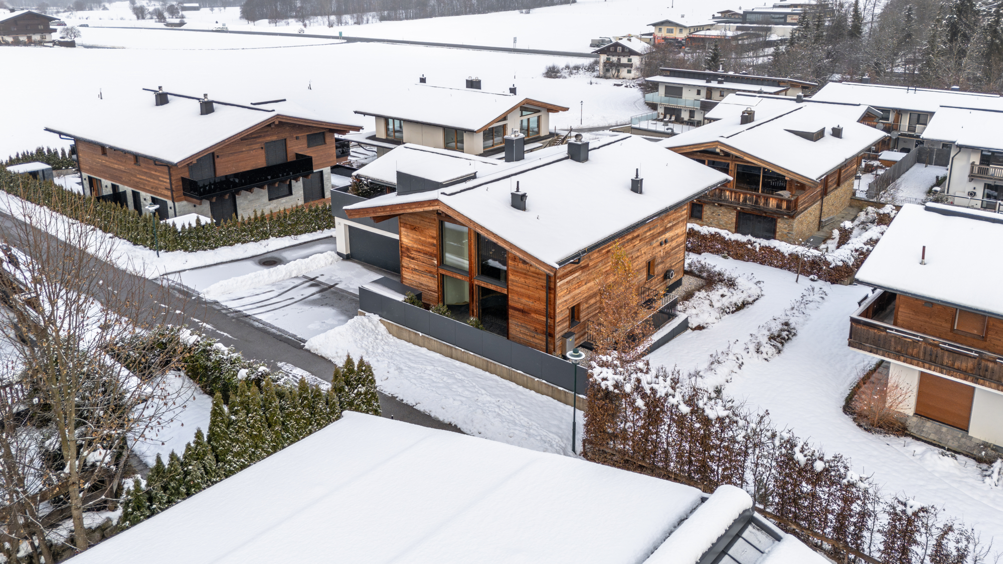 Die großzügig geschnittenen Wohnbereiche mit lichtdurchfluteten Räumen schaffen ein Ambiente, das gleichermaßen offen und behaglich wirkt. Die harmonische Verbindung von alpiner Eleganz und modernen Details verleiht der Immobilie ihren unverwechselbaren Charakter. Hochwertige Materialien, durchdachte Grundrisse und ein stilvolles Design machen jedes Zimmer zu einem Ort, an dem man gerne verweilt.