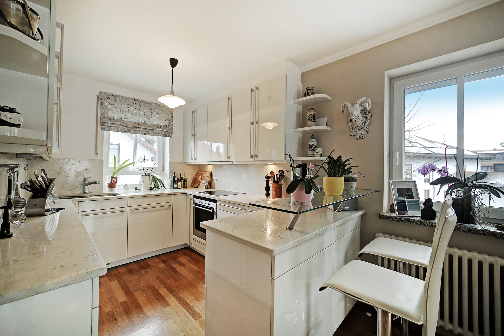 Die Küche präsentiert sich hell, modern und sehr gepflegt. Durch ihre praktische Gestaltung bietet sie gute Arbeitsflächen sowie eine funktionale Aufteilung und fügt sich in das hochwertige Gesamtbild der Wohnung ein.
