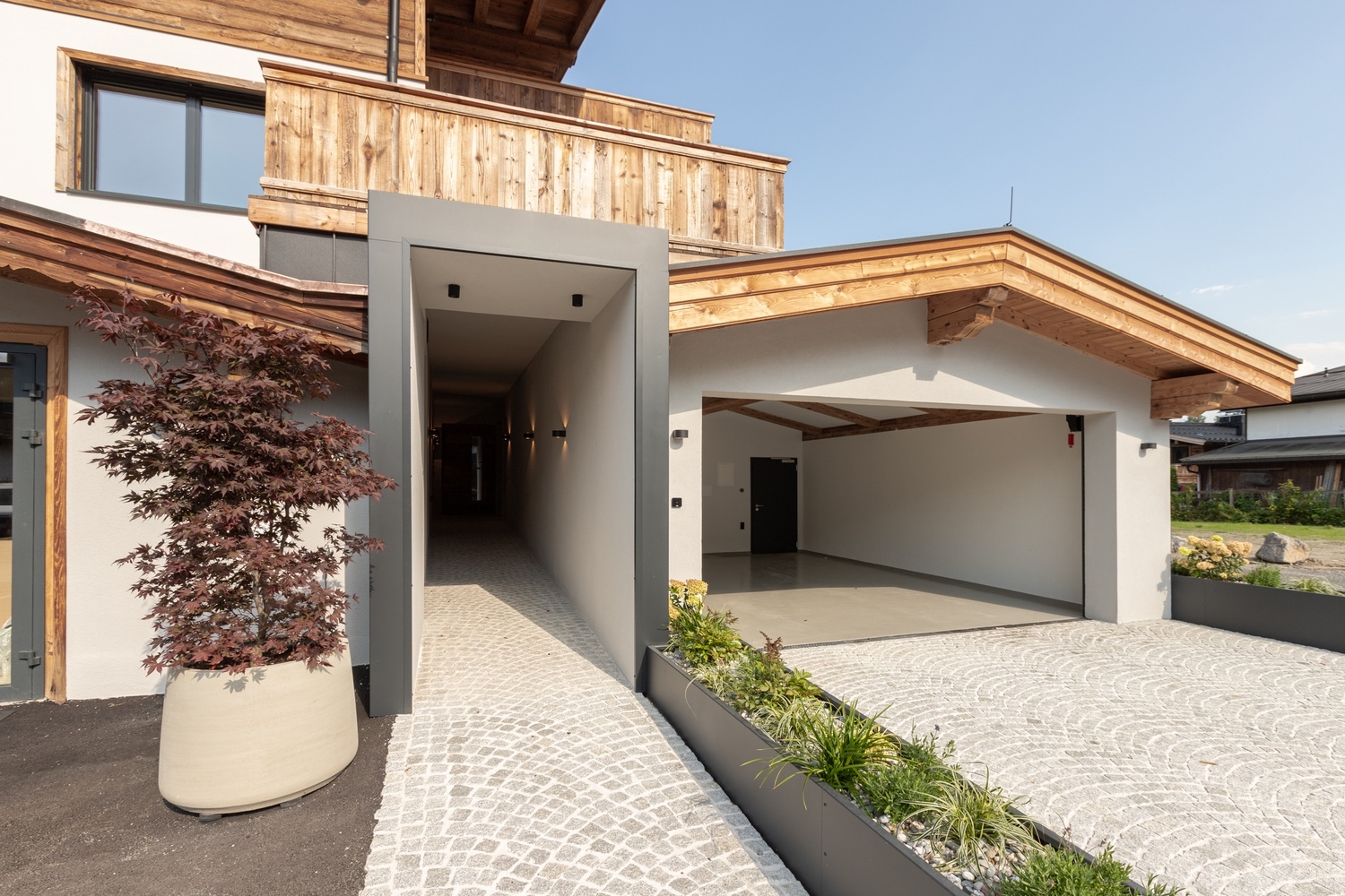 - Moderne Architektur kombiniert mit hochwertigen Altholzarbeiten