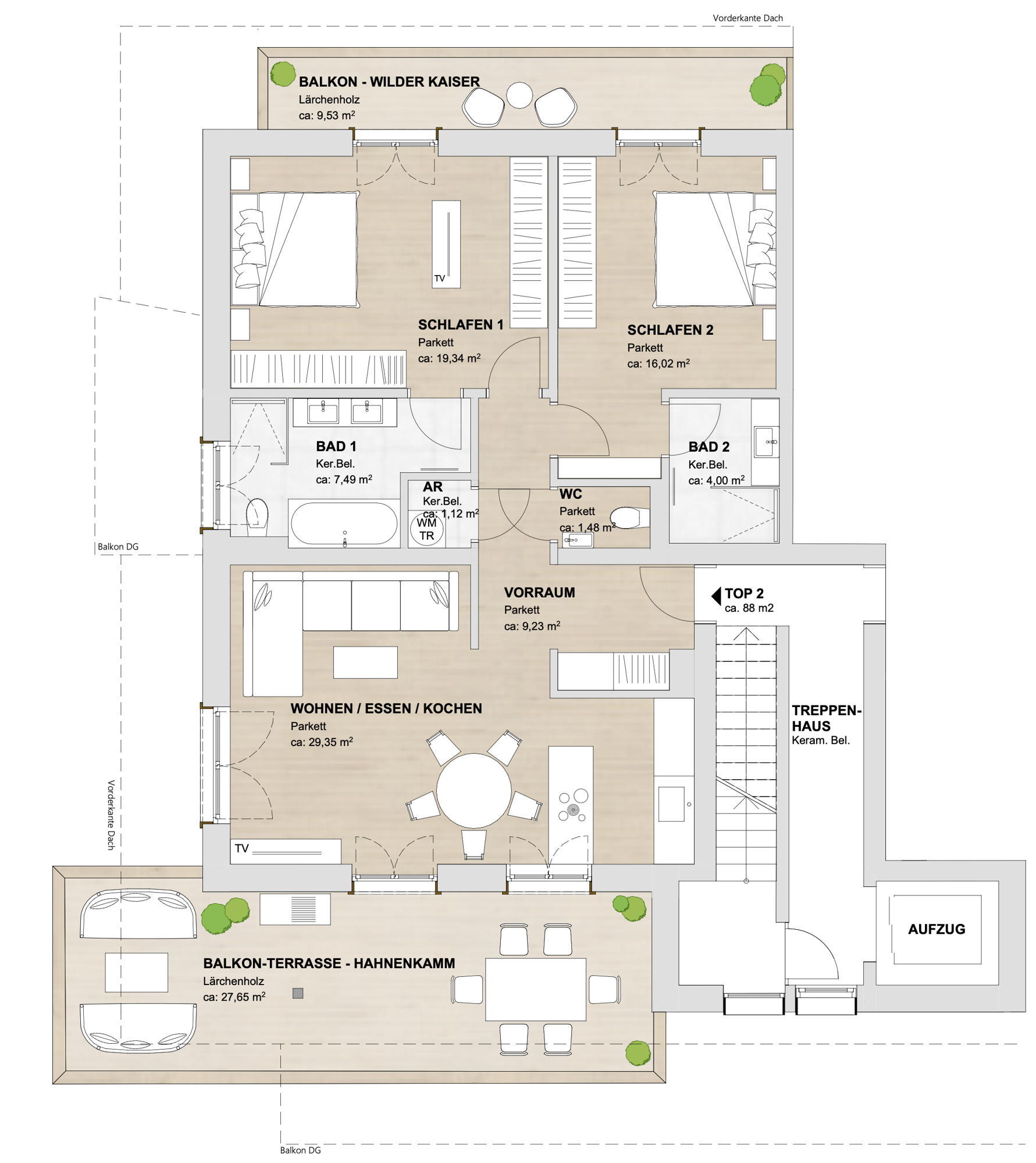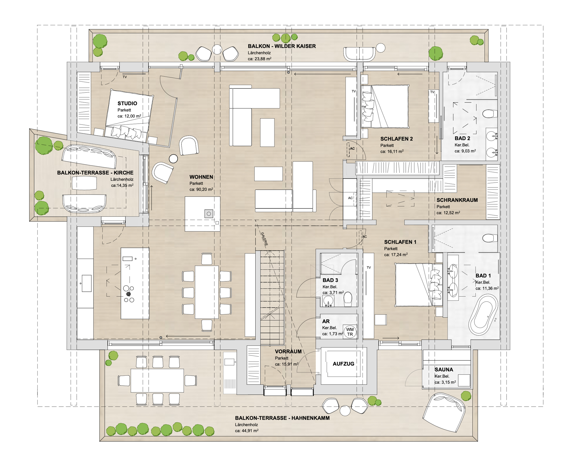- Terrassen- und Balkonflächen: ca. 170 m²