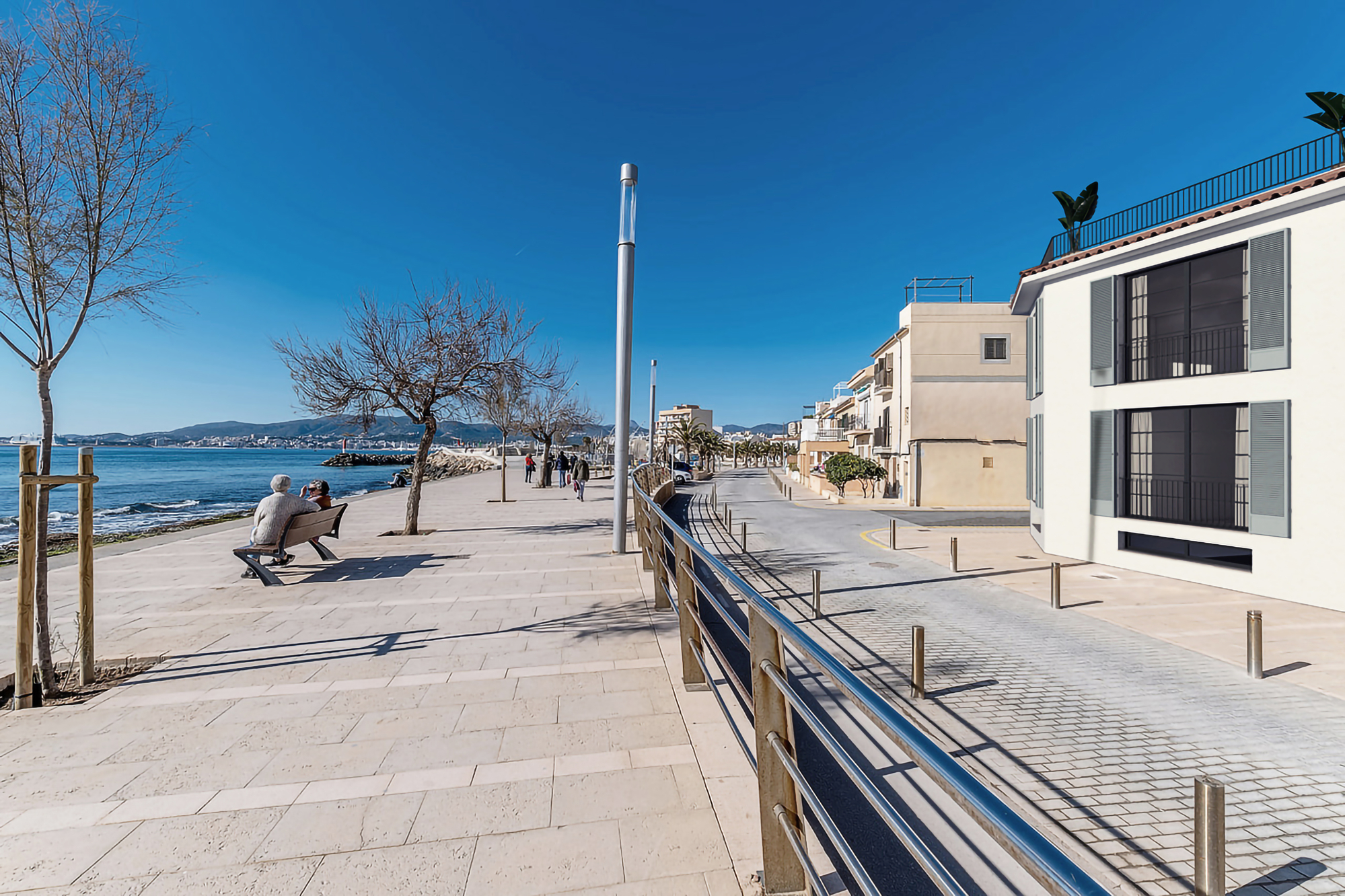 Besonders prägend ist die wunderschöne Uferpromenade mit direktem Meerzugang, kleinen Buchten und Stränden sowie einer beliebten Küsten- und Radwegverbindung entlang der Bucht. Diese verbindet die Gegend auf angenehme Weise mit Palma und unterstreicht den hohen Freizeit- und Lebenswert der Lage – ideal für Spaziergänge, Sport und entspannte Stunden am Wasser.