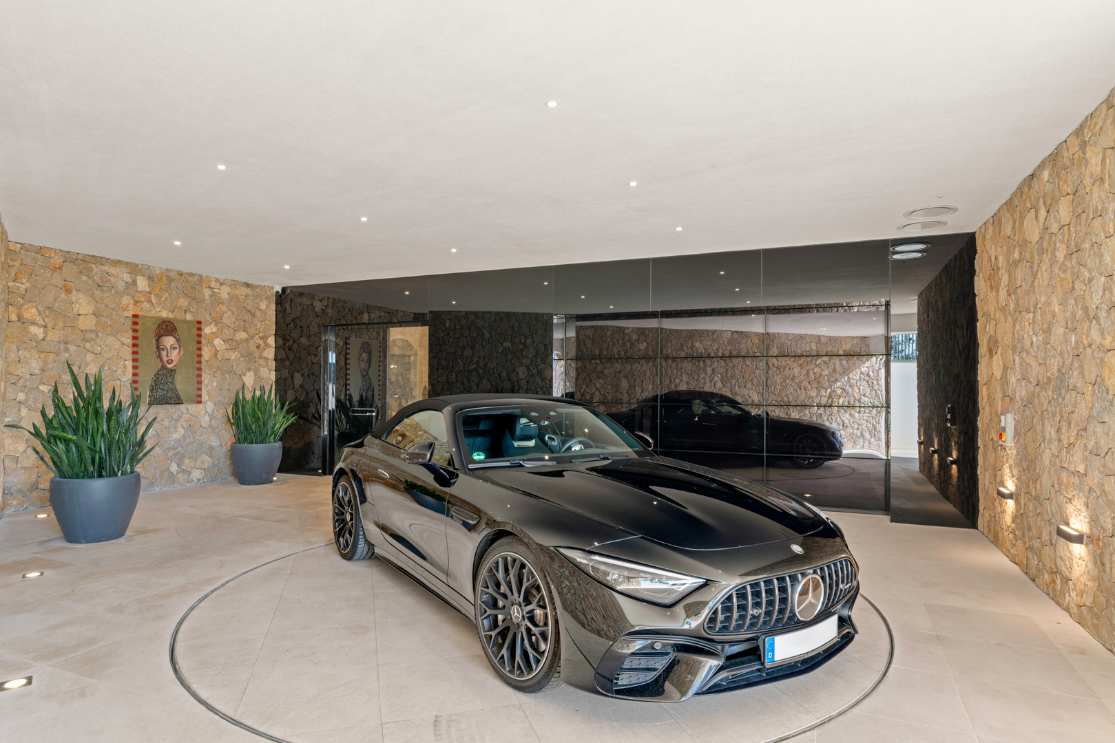 - Großzügige Garage mit Platz für bis zu sechs Fahrzeuge