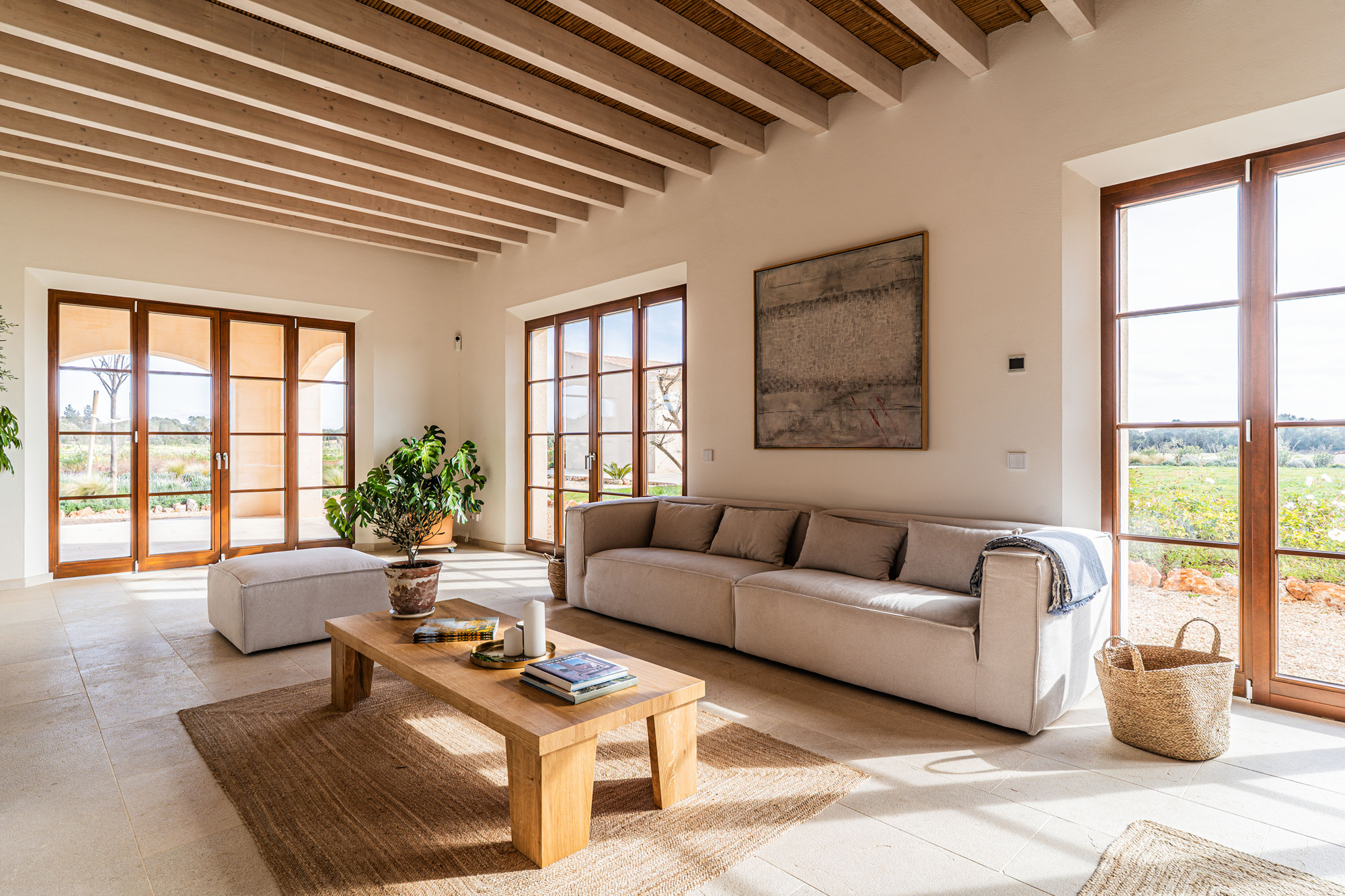 Mindestens genauso eindrucksvoll wie die Innenräume sind die Außenbereiche: Die Finca verfügt über insgesamt 7 Terrassen in alle Himmelsrichtungen – mehrere davon überdacht. Damit finden Sie zu jeder Tageszeit den perfekten Platz: Frühstück in der Morgensonne, entspannte Stunden im Schatten oder ein Sundowner mit weitem Blick über die Landschaft.